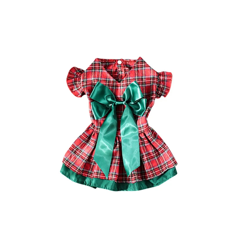 Holiday Plaid Princess dress Christmas Bow Outfit Dress